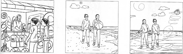 Write the story shown in the pictures.